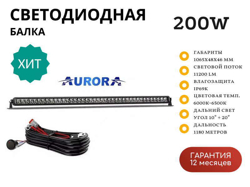 Представленная светодиодная балка AURORA комбинированного диапазона света (Combination, угол 10° + 20°). В изделиях этой серии светодиоды установлены в один ряд. Благодаря своим характеристикам, качеству сборки и надежности, данная модель может быть установлена на различных видах техники: внедорожники, квадроциклы, багги, крупную промышленную и строительную технику, трактора, вездеходы, речные и морские суда и малую авиацию. Светодиодная балка AURORA имеет прямой по всей длине корпус, выполненный с интегрированным радиатором, обеспечивающим стабильный температурный режим работы. Для оптимального отвода тепла от фары на ее корпусе есть дополнительные насечки. В изделии установлены оригинальные светодиоды OSRAM производства Германии. Для предотвращения образования конденсата внутри корпуса при перепаде температур во время работы и после отключения, светодиодная балка оснащена высокотехнологичным регулятором давления (сапун). Эта особенность кардинально отличает все изделия AURORA от других производителей этой товарной ниши. Данная LED фара AURORA так же снабжена крепежом из прочных материалов. Сама светодиодная балка, штекер и электрические провода выполнены с учетом защиты соединений от попадания пыли и влаги по стандарту IP69.