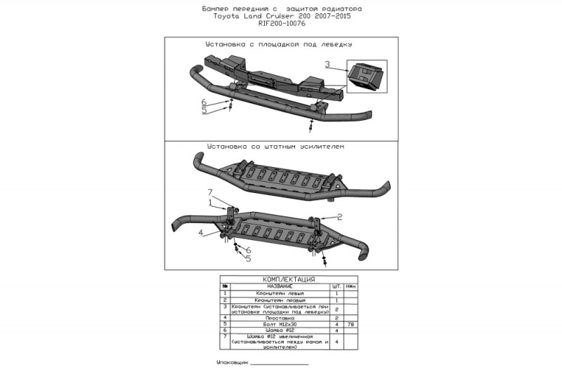 Защитная дуга совместима с площадкой РИФ под лебедку в штатный бампер RIF200-30000.