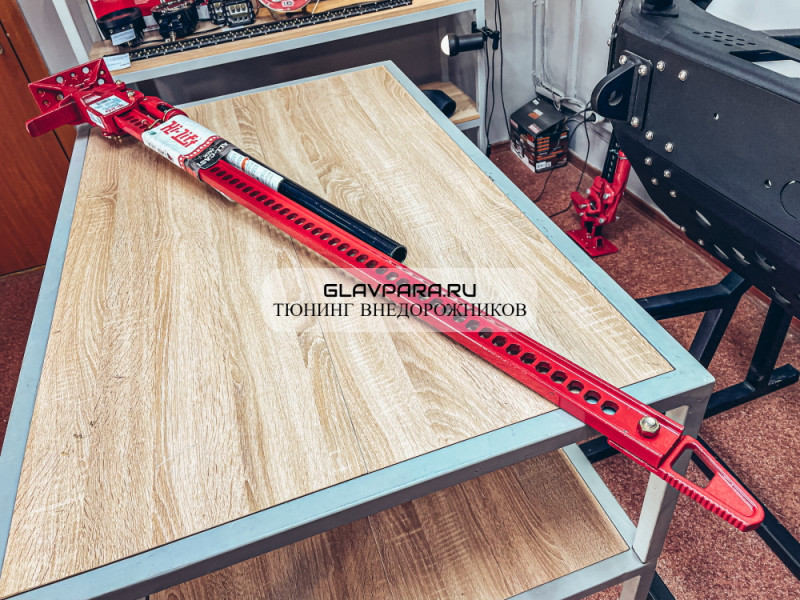 Подняв машину на высоту Hi-Lift, вы без труда подложите под колеса сэнд-траки, замените колесо и сделаете мелкий ремонт. Реечный домкрат также отлично выполняет функции пресса и даже может помочь в вытягивании кузовных деталей.