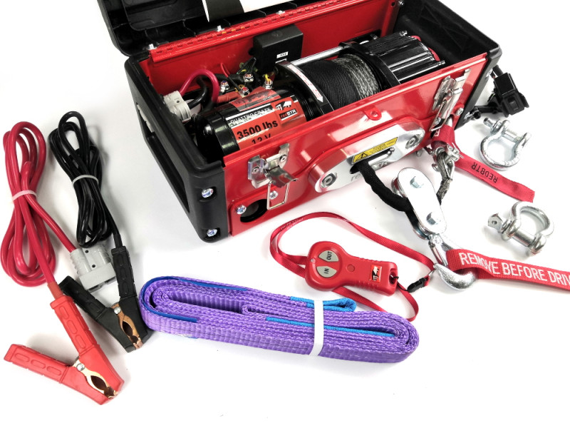 Лебедка redBTR переносная в ящике 3500 lbs 1587 кг синтетический трос