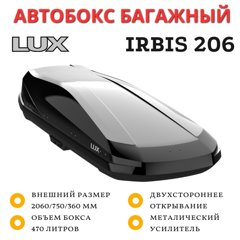 Автобокс LUX IRBIS 206 черный глянец 470L двустороннее открывание (2060х750х360)