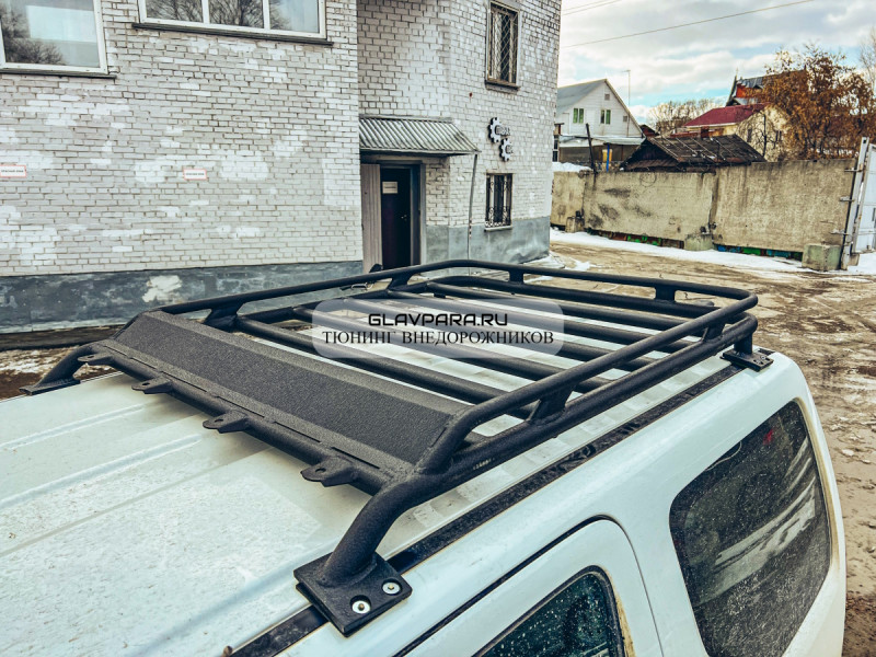 Багажник покрашен в черный цвет. Он оснащен обтекателем, который минимизирует сопротивление ветра, и ручками, позволяющими установить дополнительное освещение на крыше.