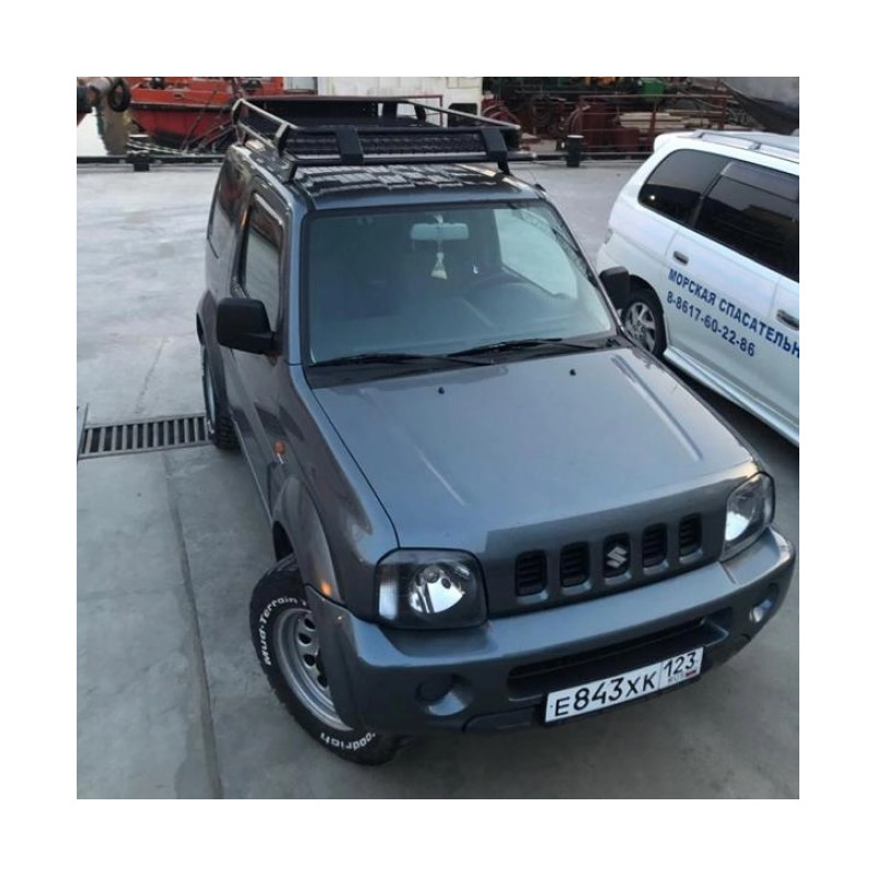 Багажник экспедиционный Suzuki Jimny с сеткой.Установка в штатные места! Сверхпрочный, стильный, максимально удобный багажник для перевозки любых грузов. Широко применяется любителями охоты и рыбной ловли! Уникальные крепления багажника к кузову предохраняют корзину от расшатывания при езде по пересеченной местности. Багажник оснащен крепежом под задние фонари, площадкой под люстру, креплениями для растяжки веткоотбойников. Место под крепление номера с подсветкой. Грузоподъёмность- 120 кг. Отличное исполнение и качество!