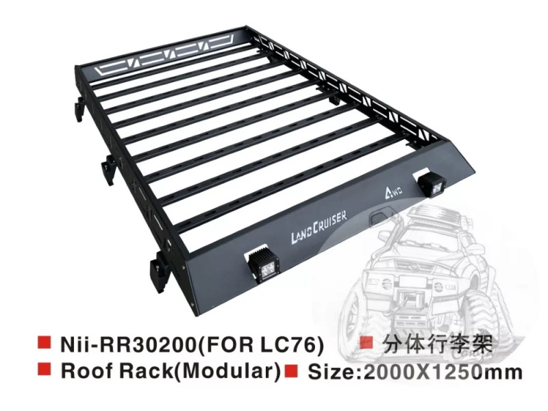 Багажник цельносварной металлический Toyota Land Cruiser 76 в комплекте с фонарями 200*125см RR30200