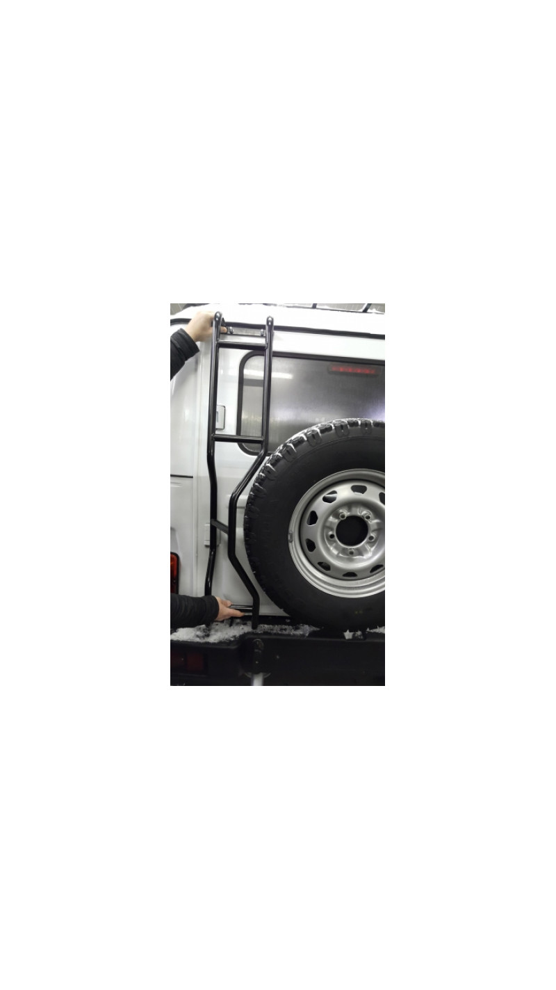 Данная лестница предназначена для установки на заднюю дверь автомобиля уаз хантер, с левой стороны по ходу движения автомобиля.