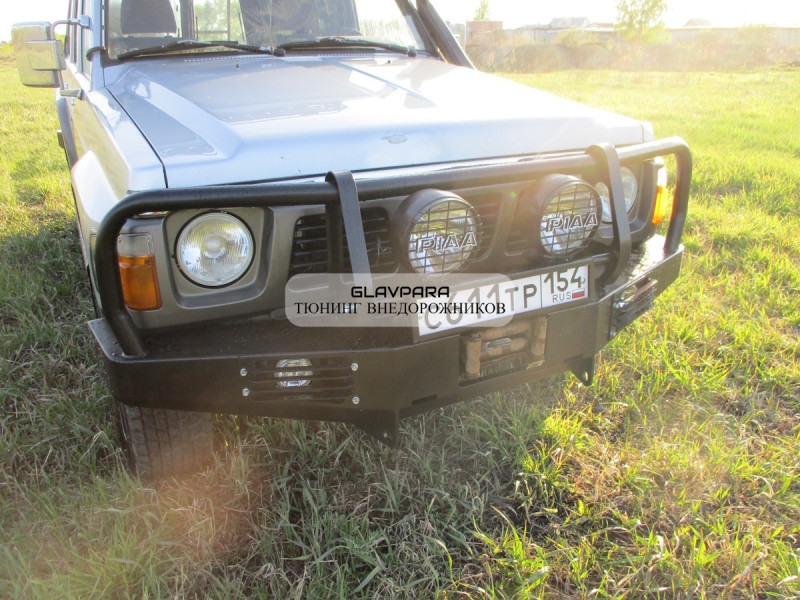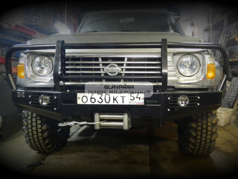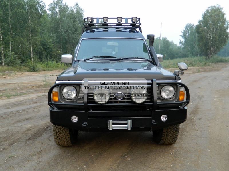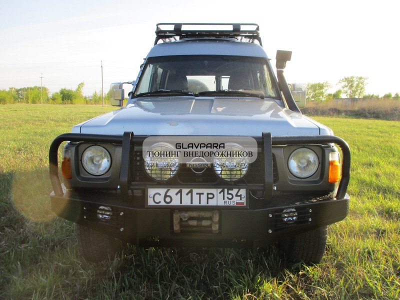 Данный бампер будет отлично смотреться в сочетании с Пороги силовые Torque 4x4 для Nissan Patrol Y60 и Экспедиционный багажник Torque 4x4 для Nissan Patrol Y60 с низкой крышей