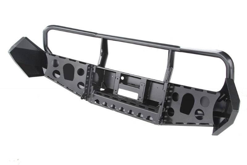 Бампер оснащен мощными упорами под реечный домкрат и буксирными проушинами для работы с рывковой или буксировочной стропой. Тщательно продуманная конструкция внутренних усилителей обеспечивают максимальную надежность бампера, стойкость к высоким нагрузкам и сильным ударам.