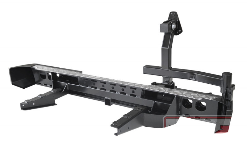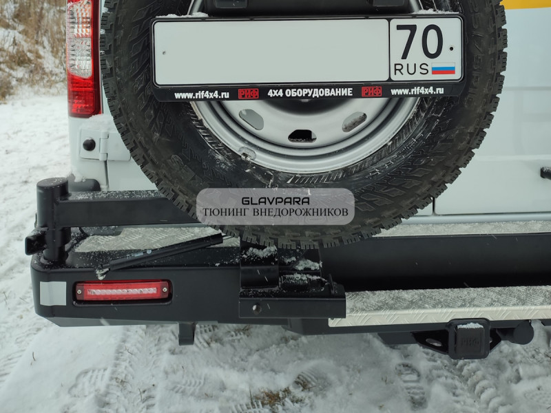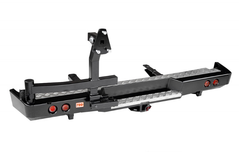 Задний силовой бампер РИФ надежно защитит кузов автомобиля на бездорожье или в городе в случае непредвиденных инцидентов. Бампер оборудован упорами под хай джек и буксирными проушинами для работы с рывковой или буксировочной стропой.