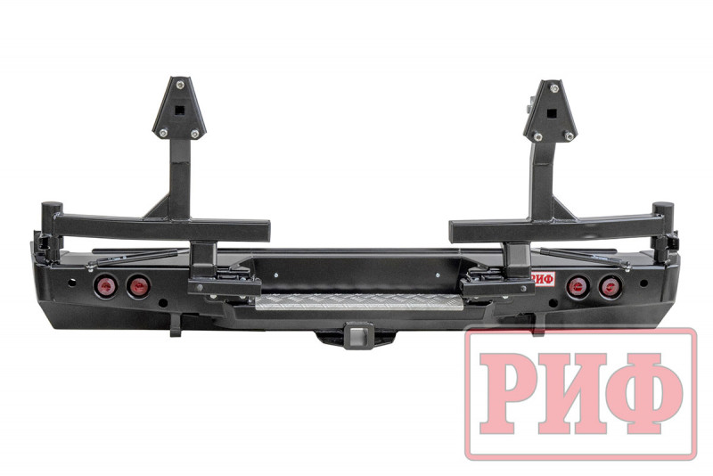 Бампер РИФ силовой задний Toyota Tundra 2007+ с квадратом под фаркоп, 2-мя калитками, фонарями, подсветкой номера