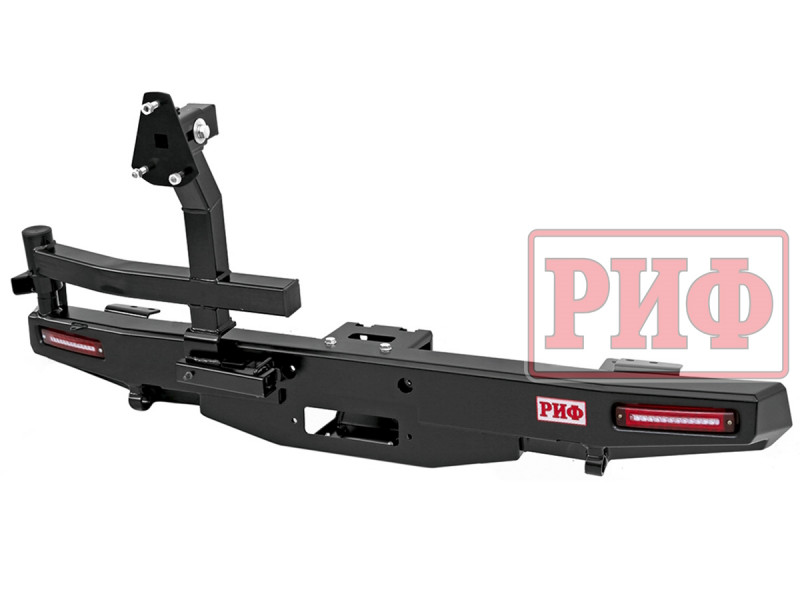 Задний силовой бампер РИФ надежно защитит кузов автомобиля на бездорожье или в городе в случае непредвиденных инцидентов. Бампер оборудован упорами под хай джек и буксирными проушинами для работы с рывковой или буксировочной стропой.