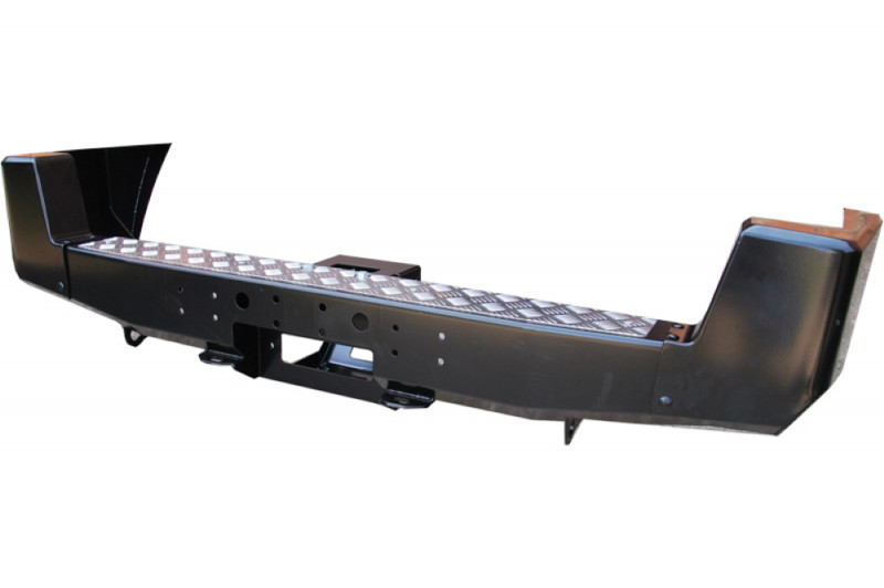 Задний силовой бампер РИФ надежно защитит кузов автомобиля на бездорожье или в городе в случае непредвиденных инцидентов. Бампер оборудован упорами под хай джек и буксирными проушинами для работы с рывковой или буксировочной стропой.