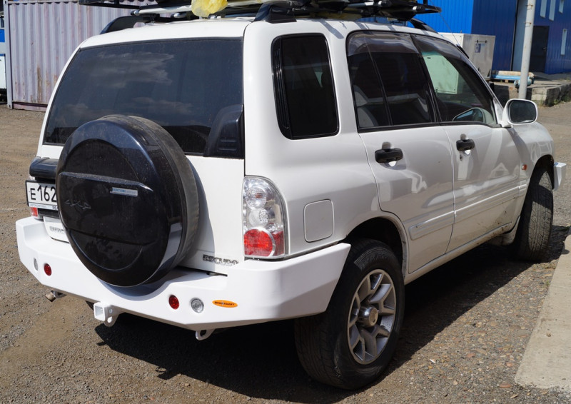 Задний силовой бампер Вездеходофф для Suzuki Escudo 1997-2005 — надежное и практичное решение для вашего внедорожника. Бампер оснащен усиленными упорами под реечный домкрат и дополнительными модульными фонарями (в комплекте). Возможно изготовление бампера со встроенным американским «квадратом» для фаркопа или аксессуаров. Порошковое покрытие обеспечивает долговечность и устойчивость к коррозии, перед покраской проводится обязательная дробеструйная обработка. Возможна покраска в цвет по каталогу RAL или поставка неокрашенного изделия.
