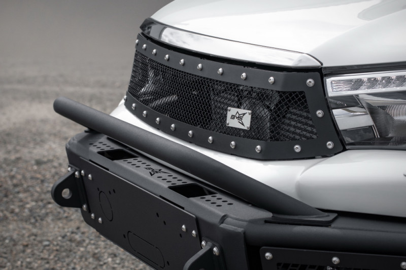 Стальная решётка радиатора с фирменной 3D-текстурой BMS защитит подкапотное пространство от веток и камней, в то же время пропуская достаточно воздуха для работы двигателя. Декоративная накладка устанавливается взамен части штатного бампера, который иначе пришлось бы обрезать при установке силового.