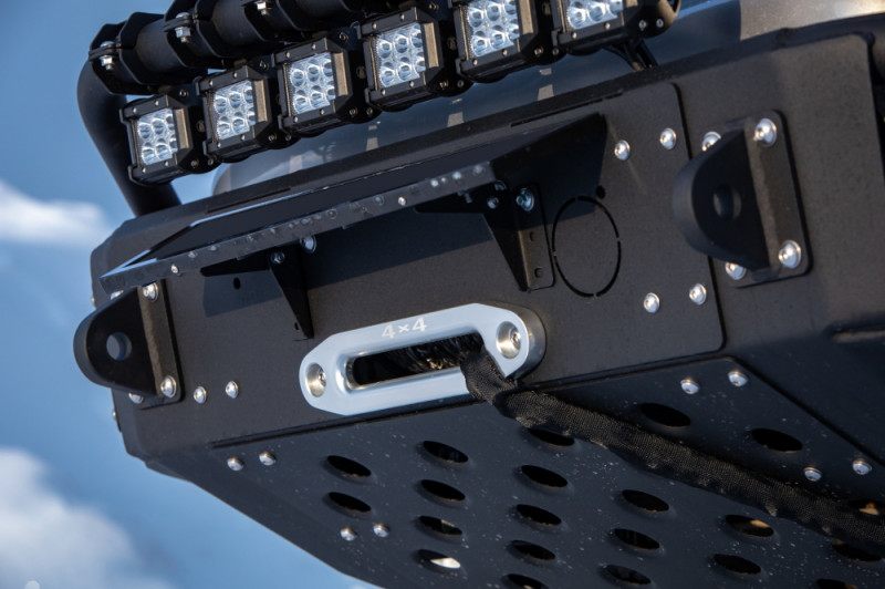 В бампере предусмотрены посадочные места для противотуманных фар, они защищены стальными решётками. Кстати, фары уже в комплекте: яркие светодиодные источники света с герметичным корпусом, устойчивым к пыли и влаге – то, что нужно для экспедиций.