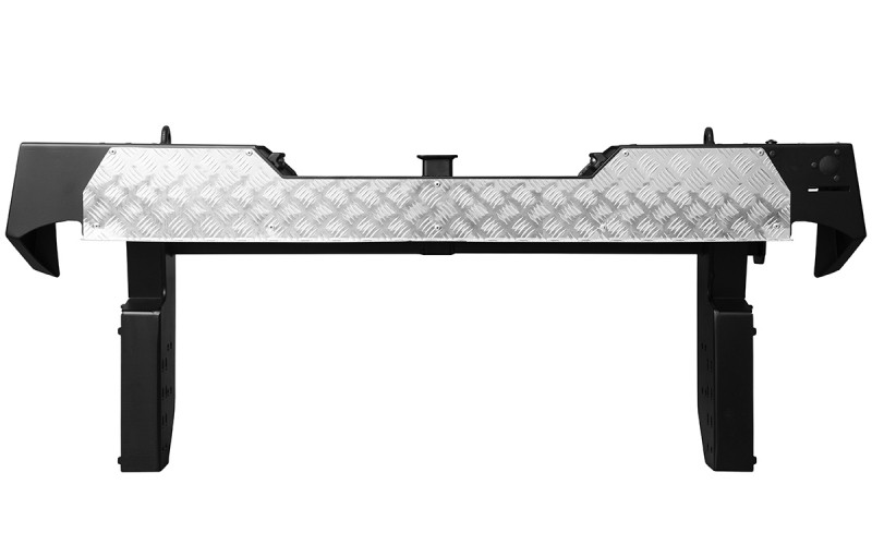 Данный бампер оснащен такими функциями как: проёмы под дополнительные фонари Eagle Eye LED, ПТФ Eagle Eye LED R, подсветка НЗ, упоры под реечный домкрат, буксирные проушины, Al накладка, квадрат 50х50, возможность установки калитки.