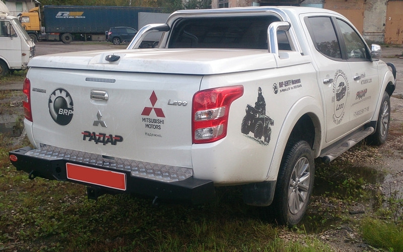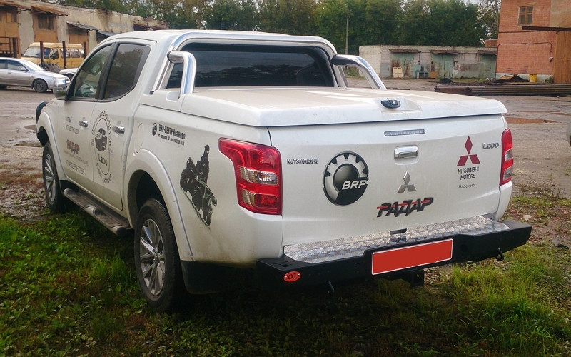 Бампер задний Митсубиши Л200 2015+ с квадратом под фаркоп.