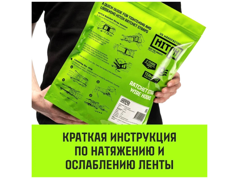 Для безопасной транспортировки груза HITCH разработал особую технологию TERMO-TEX. Производство ленты стяжного ремня включает два обязательных этапа – термофиксацию материала и его растягивание. Затем ленту для ремней окрашивают и разравнивают при высокотемпературном режиме. Достигаются точные показатели допустимого растяжения. Благодаря этому, ремни для крепления груза HITCH RS обладают уникально низким процентом удлинения при максимальной нагрузке (менее 6%).