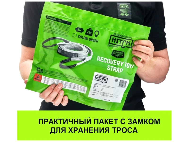 Троса буксировочные HITCH REGULAR изготовлены из высокопрочной полиэстерной зеленой текстильной ленты. Яркая лента хорошо видна при буксировке транспорта участникам движения на дороге. Данный буксир не растягивается под действием нагрузки, сохраняя стабильную форму. В качестве концевых элементов буксировочные тросы выпускаются как с обычными петлями так и комплектуются крюками, скобами омегообразными или синтетическими софт-шаклами в зависимости от выбранной комплектации буксировочного троса HITCH REGULAR.