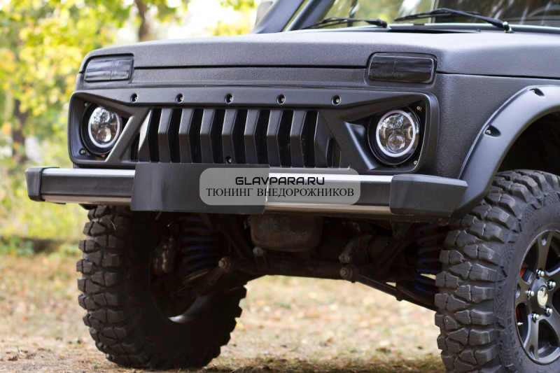 Агрессивная декоративная решетка радиатора для ВАЗ Нива 2121 не только добавит брутальности вашему автомобилю, но и защитит его радиатор от нежелательных повреждений. Материалы, из которых изготовлена такая решетка, обладают высокой прочностью и стойкостью к механическим воздействиям.